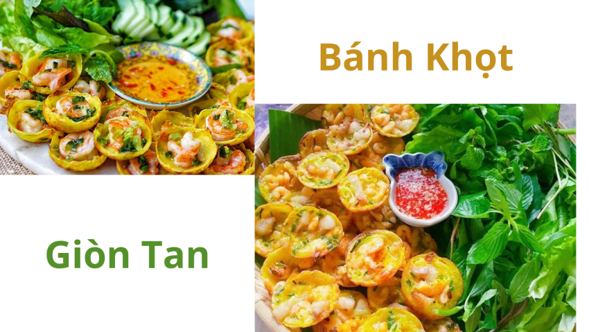 Thực khách có thể cuốn chung với rau sống và chấm nước mắm chua ngọt để tăng thêm độ thơm ngon của bánh khọt. Có thể nói đây là món ăn được yêu thích nhất của người dân địa phương và khách du lịch từ khắp nơi.
